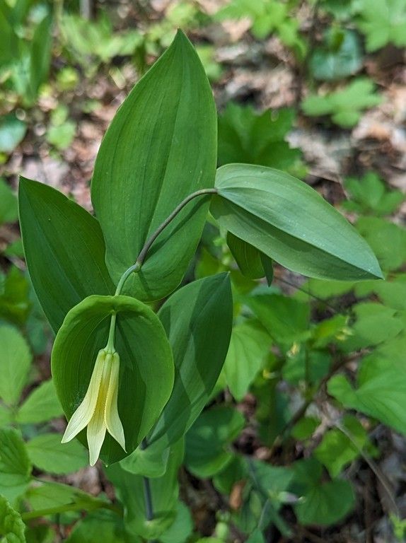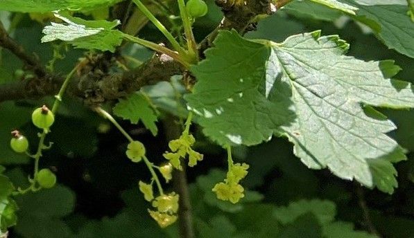 At the junction of Dickey Ridge and Snead Farm Trail, turn left onto Snead Farm Trail. Elongated yellow Perfoliate Bellwort (Uvularia perfoliata) flowers seem to hang from the middle of leaves in spring. You may see Pawpaw flowers on small trees (Asimima triloba), fruits to follow in the fall. Under the doubly-divided leaves of Wild Sarsaparilla (Aralia nudicaulus), each plant has a ball of flowers arising from the ground with no leaves on the flower stem. Just before the trail emerges from the woods at the white Snead Farm barn are Red Currant (Ribes rubrum) bushes left from the old farmstead. Strings of small, yellow, five-petaled flowers become strings of green berries that ripen red. The Currants are being overgrown by invasive Multiflora Rose (Rosa multiflora).