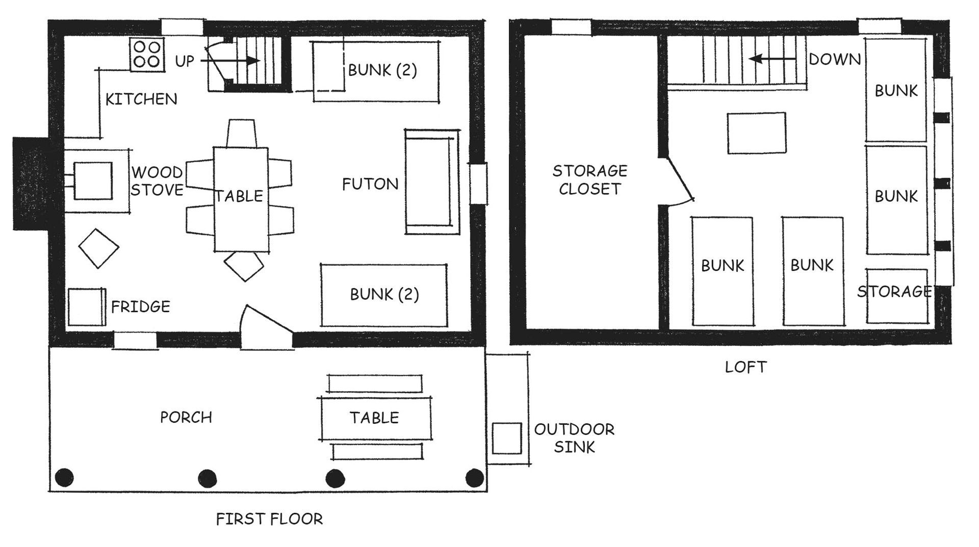 This two-story, semi-primitive log cabin, originally known as Weaver, was renamed for PATC Honorary Life Member Robert Humphrey for his dedicated restoration efforts on the cabin. Located in Elkton, VA, down the hill from Cliff’s House, this cabin was constructed of chestnut, pine, and oak logs nearly two-hundred years ago. Access the cabin from the adjacent parking area. There, you will find a kitchen/dining area with a refrigerator and electric stove. On the front porch, the sink provides running water from the spring through the fall; an outdoor spigot is available in colder months. Sleeping arrangements include 2 double-deck bunks and 4 single bunks. Hikers can travel to nearby SNP. Please note that there are neighbors near the cabin.