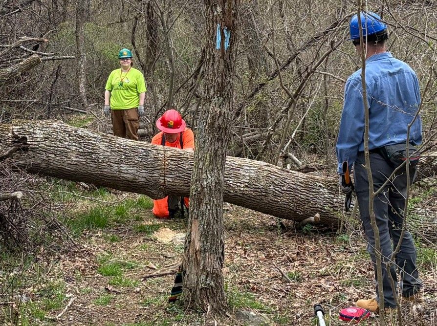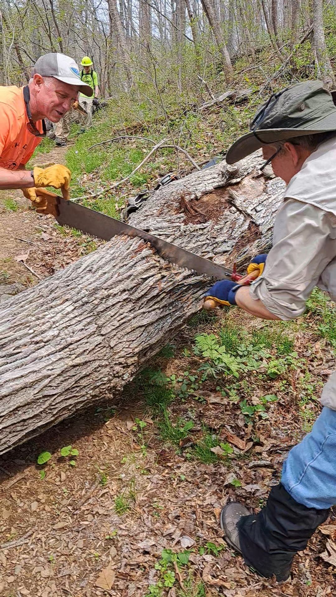 The crew members were experienced with the physical nature of the crosscut process and had previously demonstrated their ability to handle substantial effort. The rest of the team included Kent and Julie Bauer, Roger Friend, Bruno Carlot, Rich Lordahl, and Middle Piney Branch maintainer Nicole Bridgland.