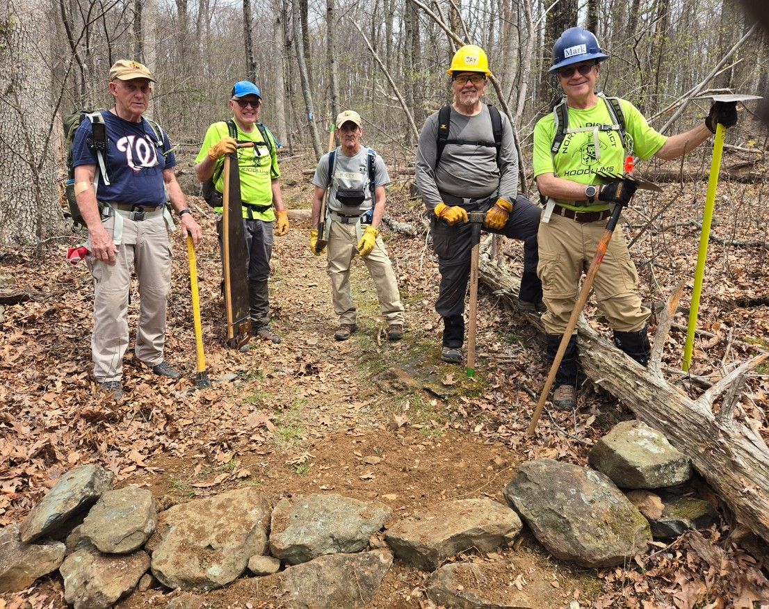 Jim Fetig led an experienced crew to the section of the AT near the Elkwallow Wayside and picnic areas. They found clogged water bars, check dams, and blowdowns,which gave the crew plenty to work on. Jim brought his Stihl pole saw and showed how potent a tool it is for smaller trunks and limbs. Marie and Rosemary Seymour, Mike Kennedy, Terry Shaw, Tina Rafalovich, Molly Bolan, and section trail maintainer Elizabeth Moser rounded out the crew.