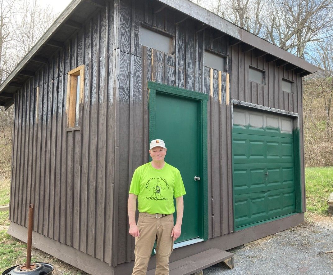 A truncated Shed Head crew - District Manager Wayne Limberg, Noel Freeman, and Richard Lee - stayed on at Piney River to continue work on the big shed started last year. At day's end, they had most of the staining done and the interior cleaned and better organized.