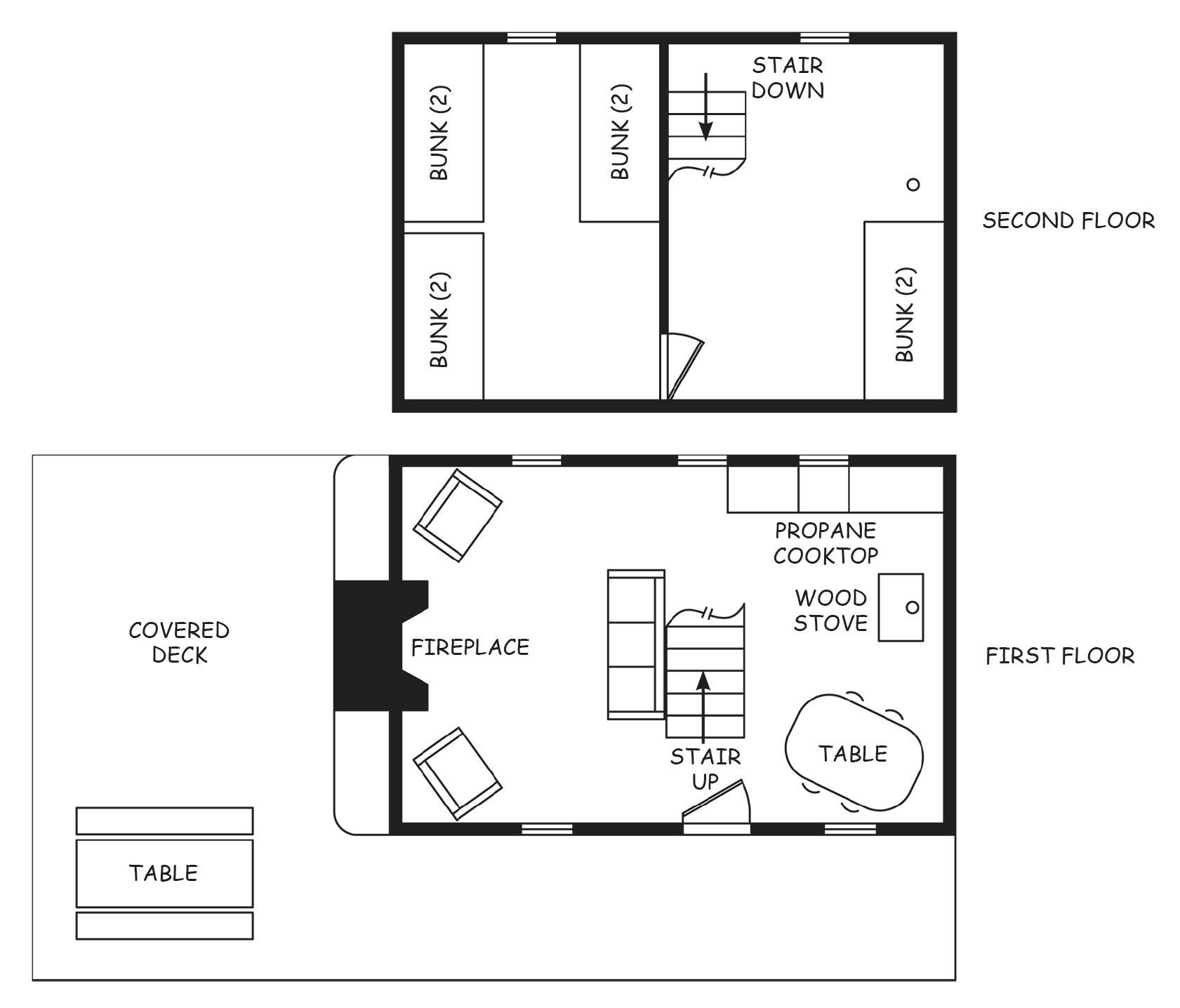 This two-story chestnut log home is located off of Skyline Drive, near mile marker 71, in Shenandoah National Park. The members-only cabin was dedicated to Honorary Life Member Keith Argow in 2010 for enabling the renovation of the structure. Access the cabin by a 1-mile downhill hike-in from the parking area. There, you will find four double-deck bunks on the second floor and a comfortable kitchen/living space on the first floor. Use the outdoor solar shower in warm weather, cook on the gas stove, and enjoy the view from the covered wrap-around deck. Hikers can connect to the AT, about 2 miles from the cabin. No outdoor fires are permitted.