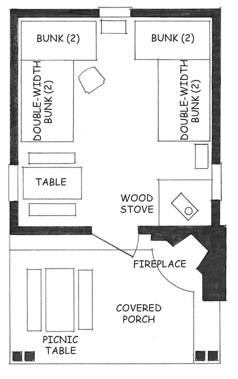This single-room, public cabin is located in the South District of Shenandoah National Park. Constructed in 1936 by artisans and members of the CCC, Doyle's River boasts views of Cedar Mountain and Via Gap. Access the cabin by a half-mile hike-in, or a 4.3 mile hike-in when Skyline Drive is closed. If the Drive is closed, the lengthier hike-in should only be braved by experienced backpackers. At the cabin, you will find two sets of bunks, two sets of double-width bunks, a wood stove, and a dining space. Overlook the beautiful views from the covered porch, where there is an outdoor fireplace and picnic table. This cabin offers an array of hiking opportunities including the AT, Doyles River Trail, and Jones Run Trail. Call SNP at 540/999-3500 (option 1, option 1) for Skyline Drive closure information and be prepared to pay the Park entrance fee.
