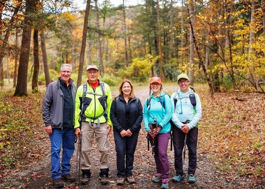 On October 22, members of the PATC’s North Chapter joined Pennsylvania First Lady Lori Shapiro for a hike on the AT from Old Forge Picnic Area to Caledonia State Park. The First Lady’s hiking group included Pennsylvania Secretary of Agriculture Russell Redding, representatives from conservation, tourism, and local government offices, Assistant District Forester Michelle Blevins, staff members, security personnel, and North Chapter members Curt and Tawnya Finney, and North Chapter District Manager Dave Trone. Kathy Seiler, another North Chapter member, represented The Greater Waynesboro AT Community. Cindy Dunn, Pennsylvania Secretary of the Department of Conservation and Natural Resources, shared words about the region’s importance and gave a cheerful wave as the hiking group stepped off.