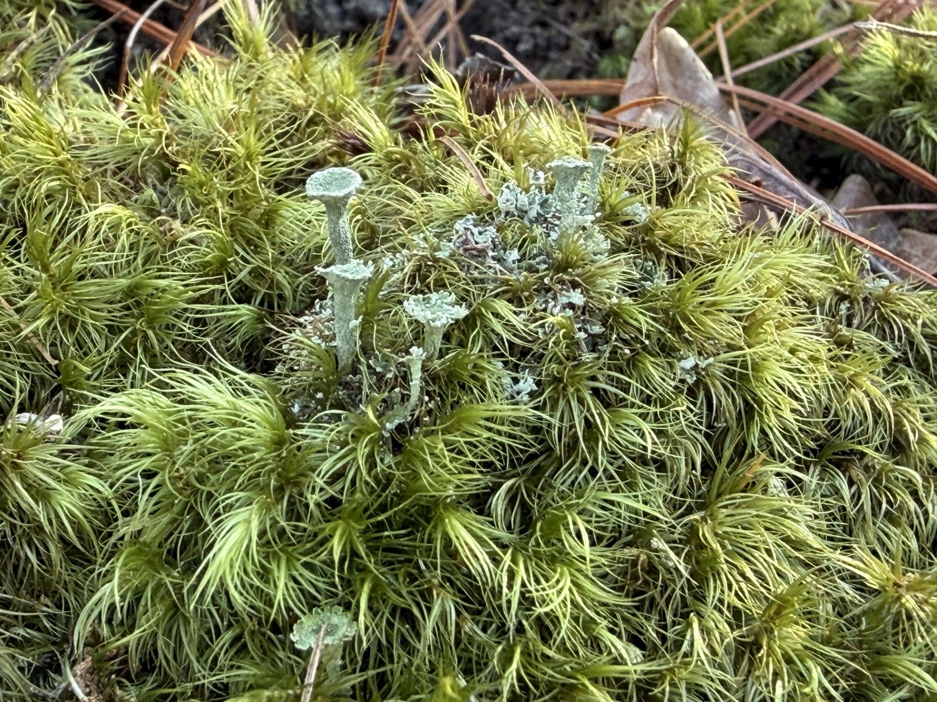 Explorers center hikes on learning and discovery. Hike leader Susan Collins has a goal to study moss this year. On a recent Shenandoah River State Park hike, her group made close observation of moss on the side of the trail before beginning to hike. Hikers used the Seek app to make identification. A few minutes of careful study piqued interest and attention, so that hikers noticed more moss and other interesting plants along the route than they might have otherwise.