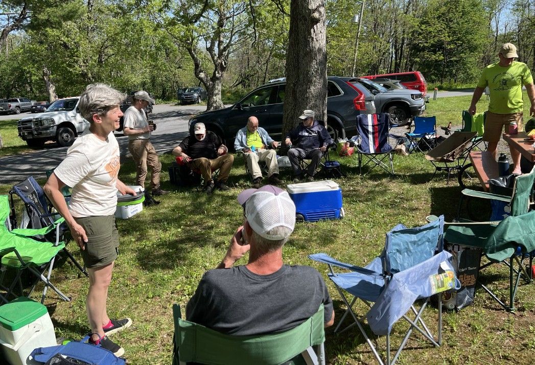 Just shy of 30 volunteers met at Shenandoah National Park’s Piney River CCC Camp for the May 17 Hoodlums outing. Head Hoodlum Tom Troutman was on a vacation, so Noel Freeman and Wayne Limberg co-led the affair. By the end of the day they were overhead negotiating with Tom to expedite his return a.s.a.p. Still, after introductions and the safety briefing, crews were organized and dispatched to their assigned tasks for the day.