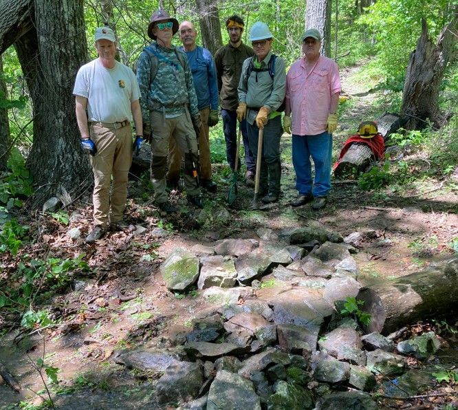 AT Crew - Jim Fetig led a crew to a section of the Appalachian Trail near Jenkins Gap for a collection of water control updates and improvements. Jim’s crew included Nicole Bridgland, Jay McCaffrey, John Young, Julie Bauer, and Roger Fast.