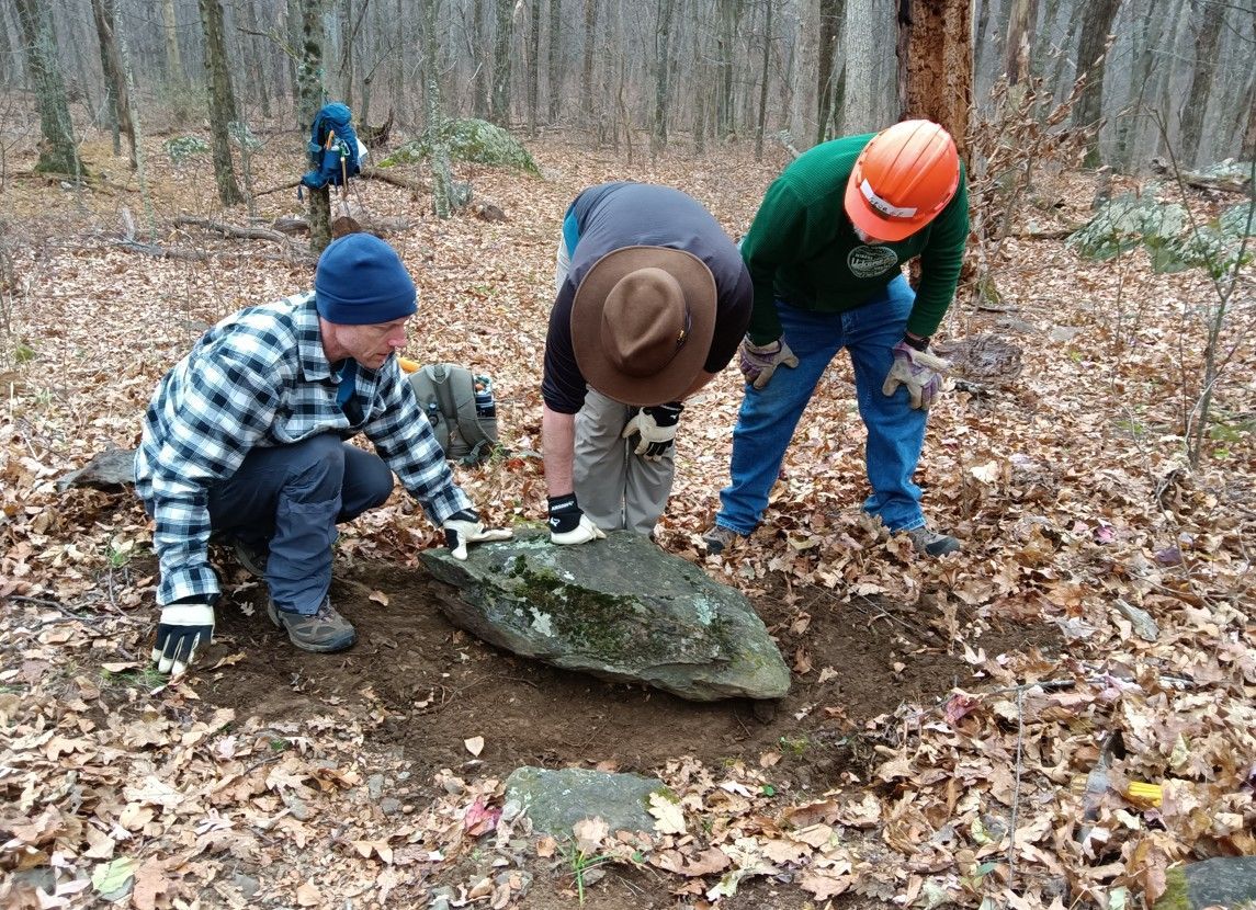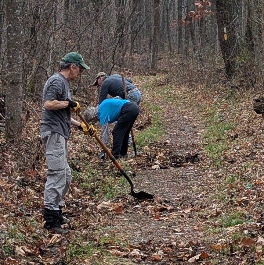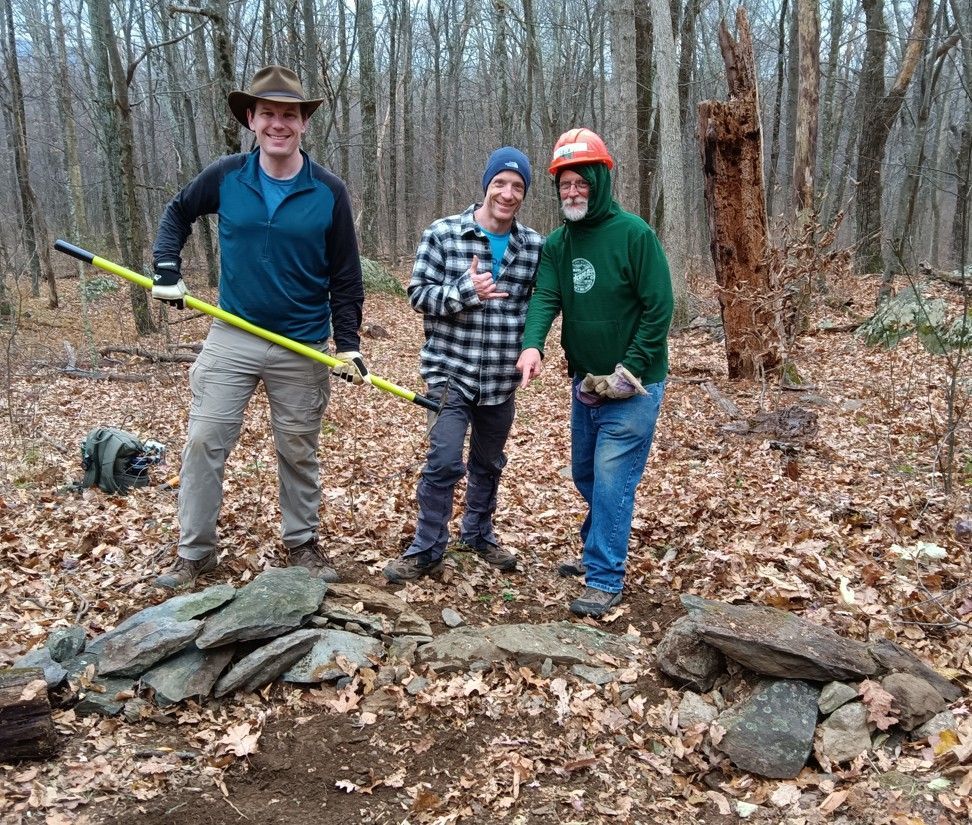 Wayne Limberg, Richard Lee and Randy Butler plus new Hoodlum recruit Kevin Furey returned to the AT south of Compton Gap to finish up some rehab work they started during the Hoodlums' October work trip. They were later joined by club President Jim Fetig and his chainsaw. Fewer hikers and Jim's saw meant more completed work. The crew rehabbed seven checkdams and put in a new waterbar along with cleaning waterbars and checkdams they did not get to in October. The section is ready for winter.