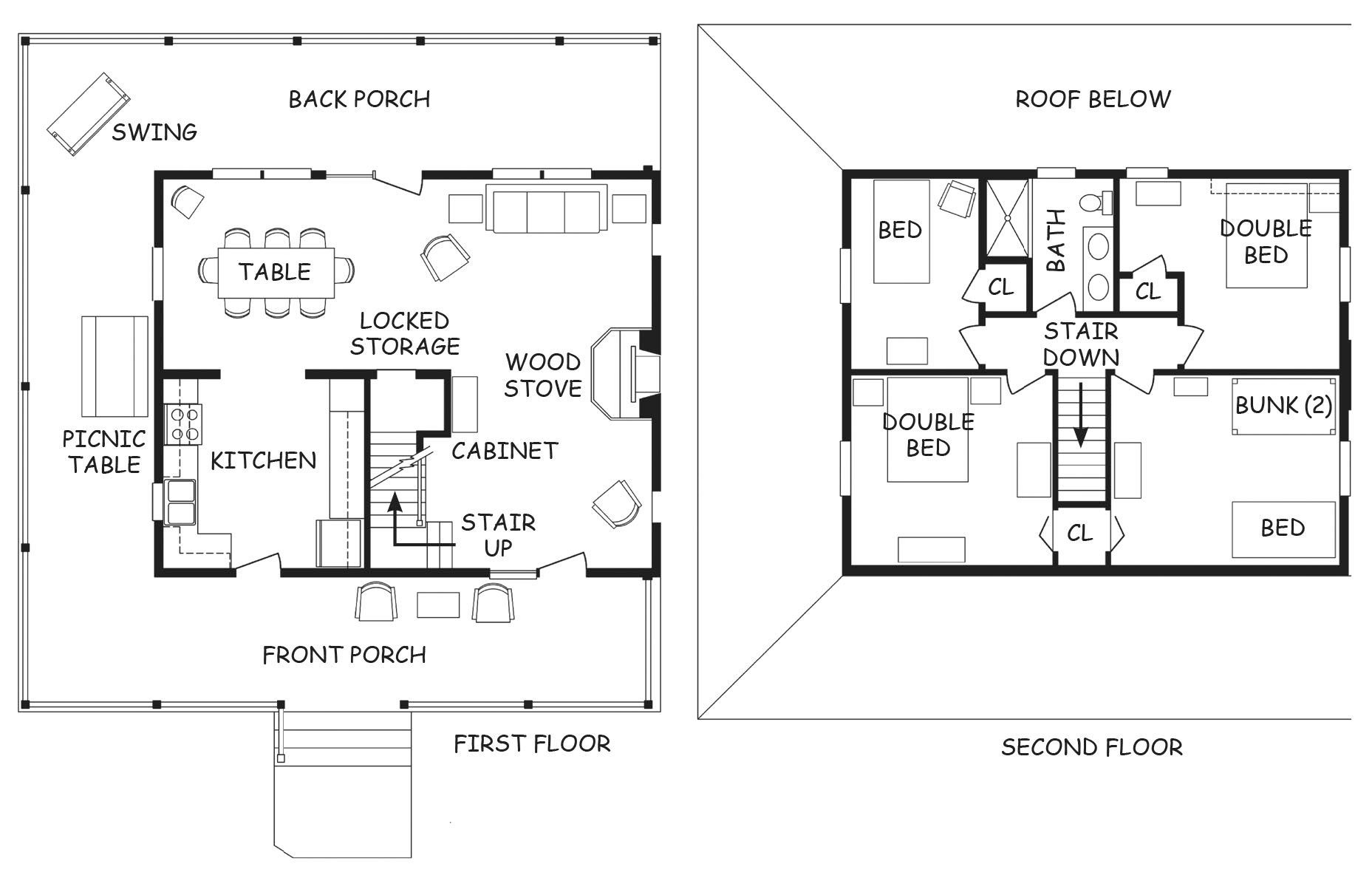 This modern cabin, acquired by PATC in 2010 and largely remodeled by 2013, is located in Franklin County, PA, just west of Mercersburg. Noted for its large wraparound porch in the picturesque Tuscarora Mountain valley, Little Cove offers a fully equipped kitchen, a comfortable living and dining space, and four bedrooms on the second floor. Sleeping arrangements include 2 single beds, 2 double beds, and a double deck bunk. Access the cabin by the adjacent parking area. Low clearance vehicles should use caution. Hikers can climb to the top of the Tuscarora Mountain to access the Tuscarora Trail by local connector trails. This cabin is ideal for families, offering private sleeping areas.