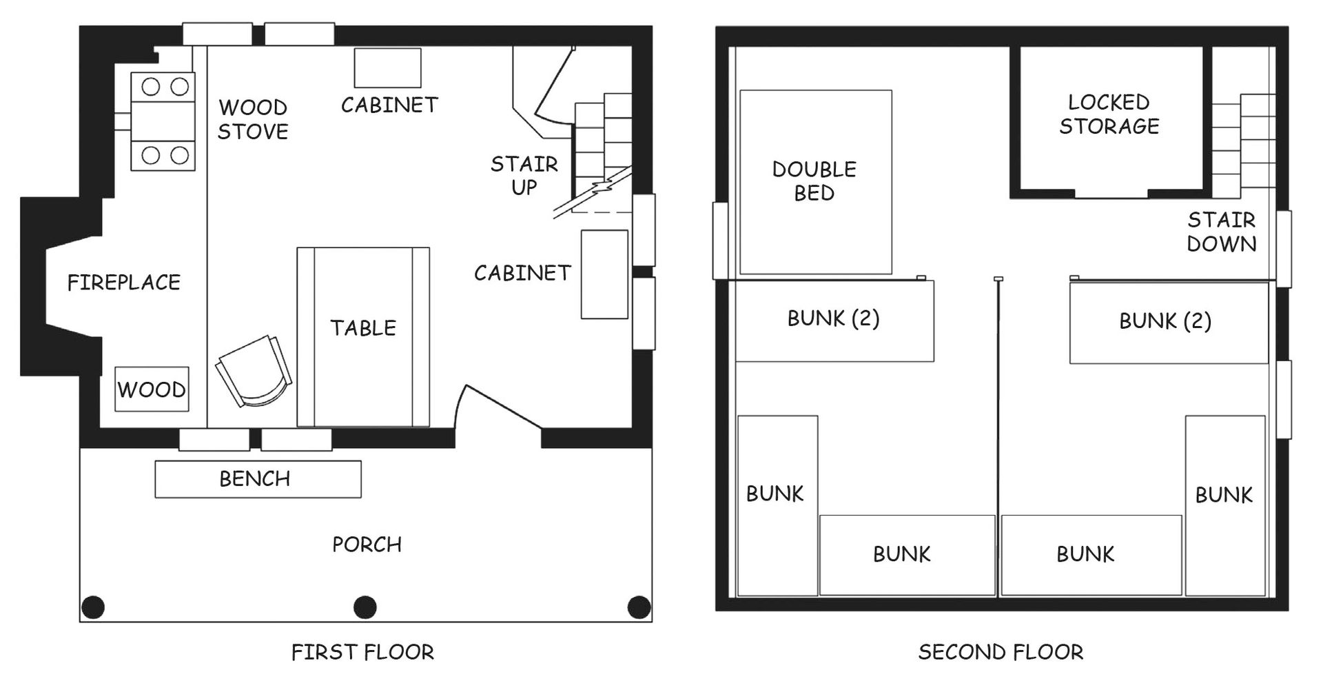 This primitive cabin, one of the oldest PATC cabins, is located in the Michaux State Forest. First used as a ranger cabin, then as a hunting lodge, Milesburn offers a large covered porch with two interior floors. On the first floor, you will find a wood cook stove, fireplace, and spacious eating area. Upstairs, there is a double bed, 2 double-deck bunks, and 4 single bunks. Access the cabin from the adjacent parking area. Hike along the AT or take Rocky Knob Trail for a 6 mile loop hike.