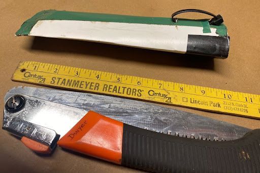 Steve Sharpe, and I replaced bow saws with aggressively-toothed folding saws. These saws are lighter, easy to carry and are nearly as effective as the larger bow saws. We made holsters to make the folding saws even more convenient. It may seem like a small thing to have to remove your pack to get your saw out, but our saws are often used and quick access is truly wonderful.