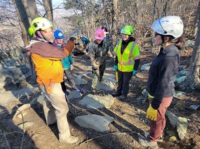 The crew stayed at Bears Den in February. If you haven’t had a chance to look around inside, you should. It’s a wonderful place. The views from the rock just down the hill from the hostel are spectacular and this month we made them a little easier to get to from the south.