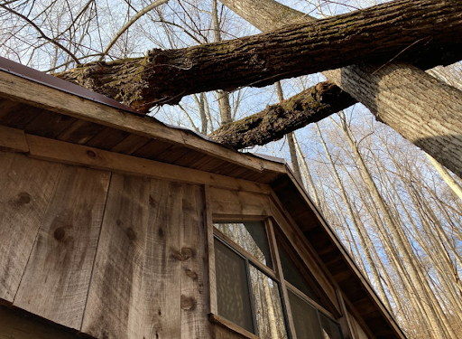 A tree fell on the roof of Johns Rest Cabin, located on the Entry Run Tract near Stanardsville, Va. Tract manager Mark Walkup visited the cabin and shared photos with me.