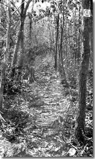 "One of the worst problems was cutting the Trail from the Applesauce House to the top of Mount Marshall. It was our first attempt at building brand new trail where there wasn't even a sign of a rabbit path. Didn't we sweat over that Mount Marshall! As we were cutting south, we used to drive in from Little Washington and camp at the head of Harris Hollow. There was a wood road leading 1.8 m. to Gravelly Spring. We either camped at the foot or came in at night and camped at Gravelly Spring. We would work both ways from Gravelly Spring.