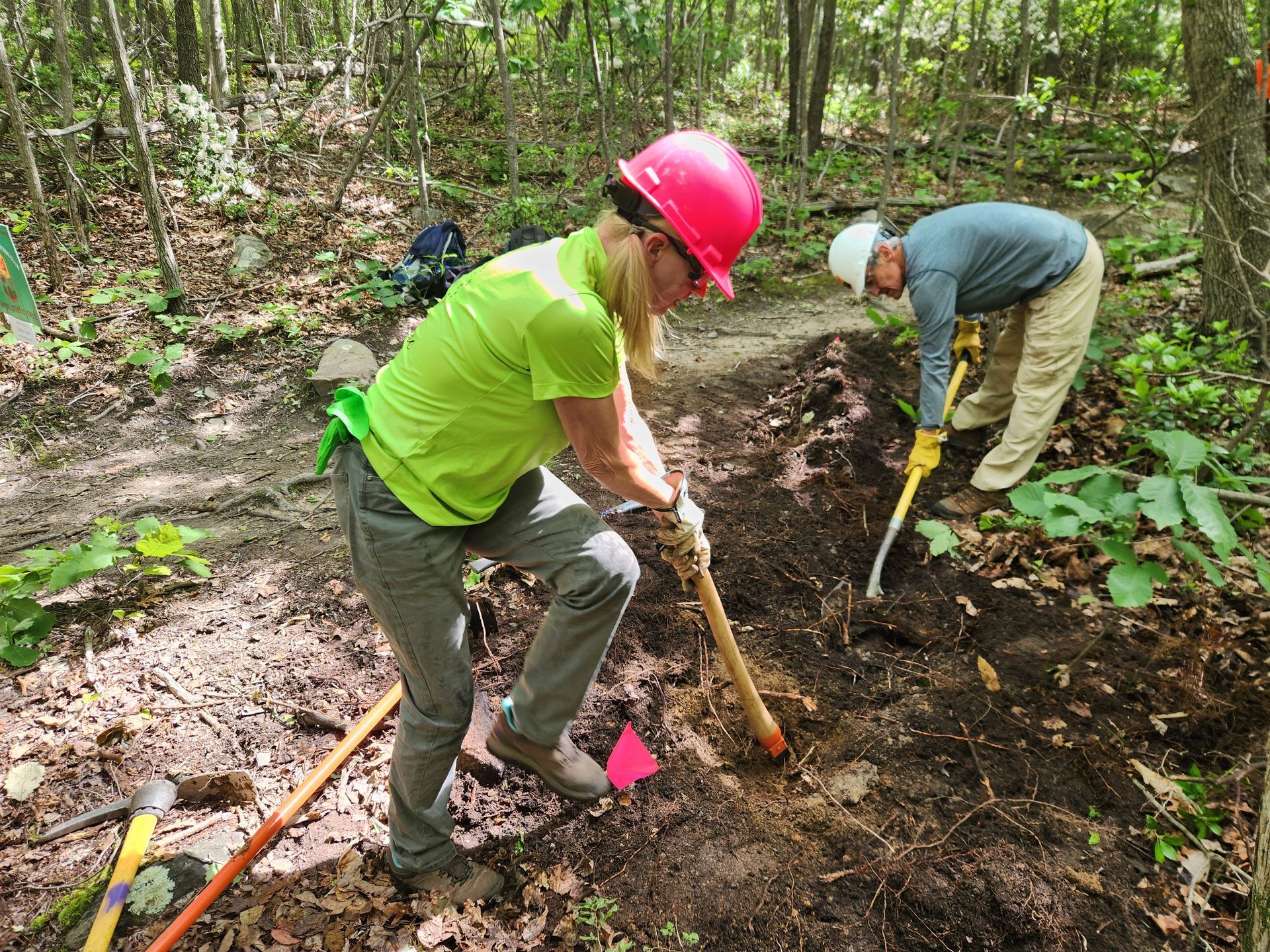 Is it the people that make the work trip memorable? Tackling the trail tasks (installing rolling grade dips) this weekend was: (new) Marty Martin, (returning) Kirsten Elowsky, Alice DeCarlo, Steve Phillips, Bill Greenan, Maria de la Torre, Dan Feer, Ellen Feer, Robert Fina, Ellen Shaw, Martha Becton, Karen Brown, Cat Randall, Chris Glembocki, Aidan Badhwar, Don Oellerich, Chris Brunton (Co-District Manager), Rob Lamar (Co-district manager) and Dave Jordahl.
