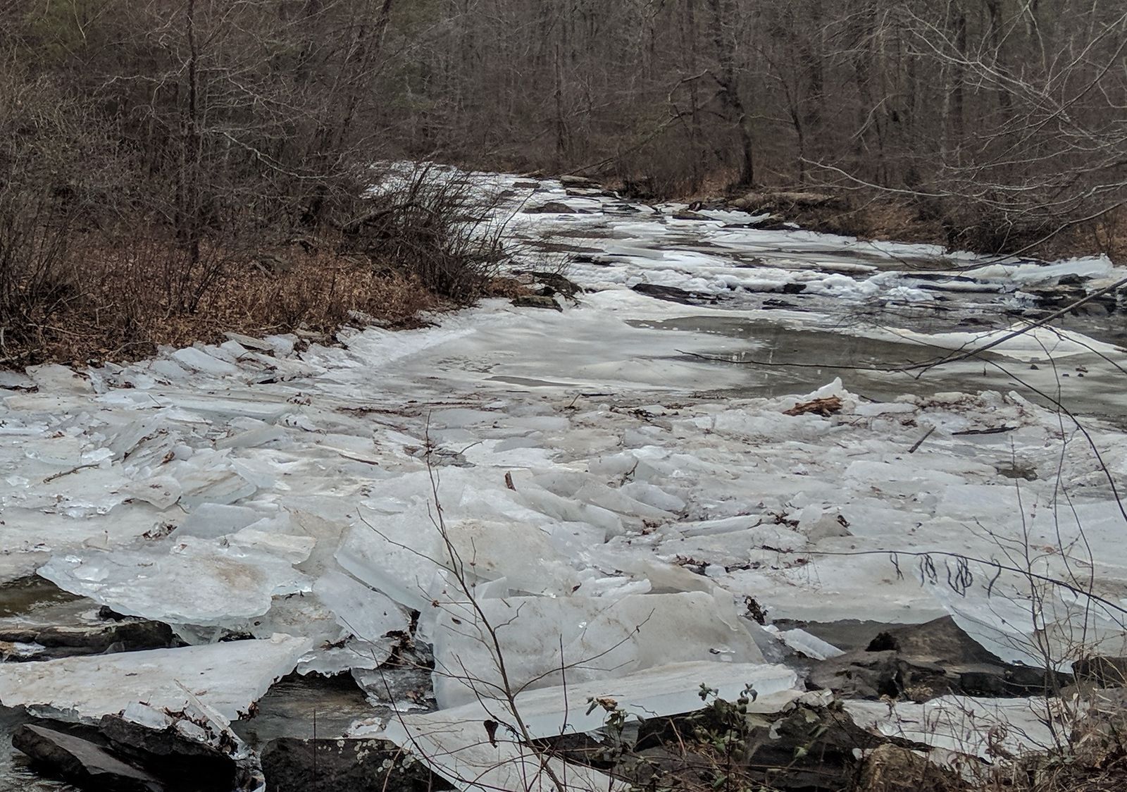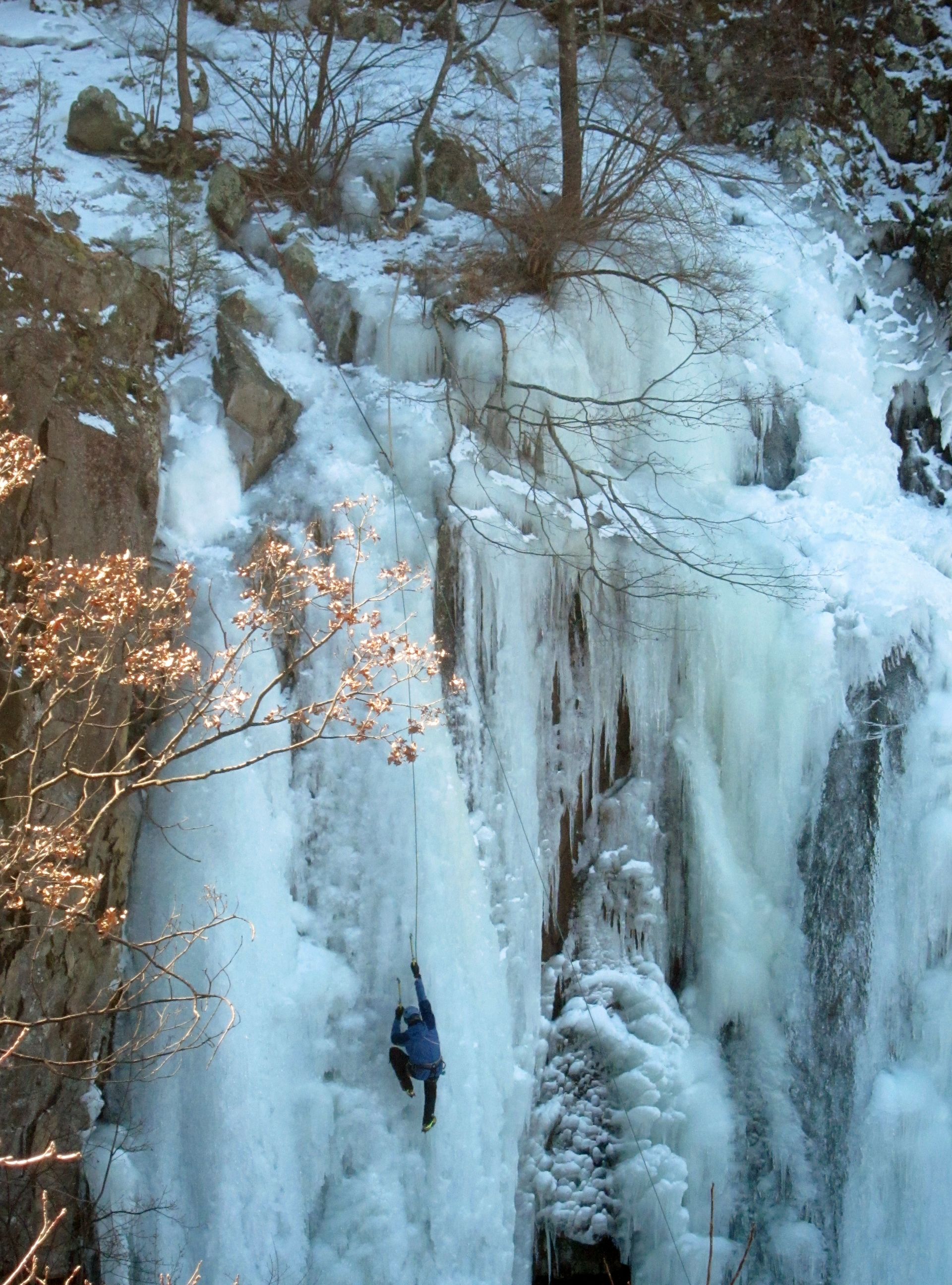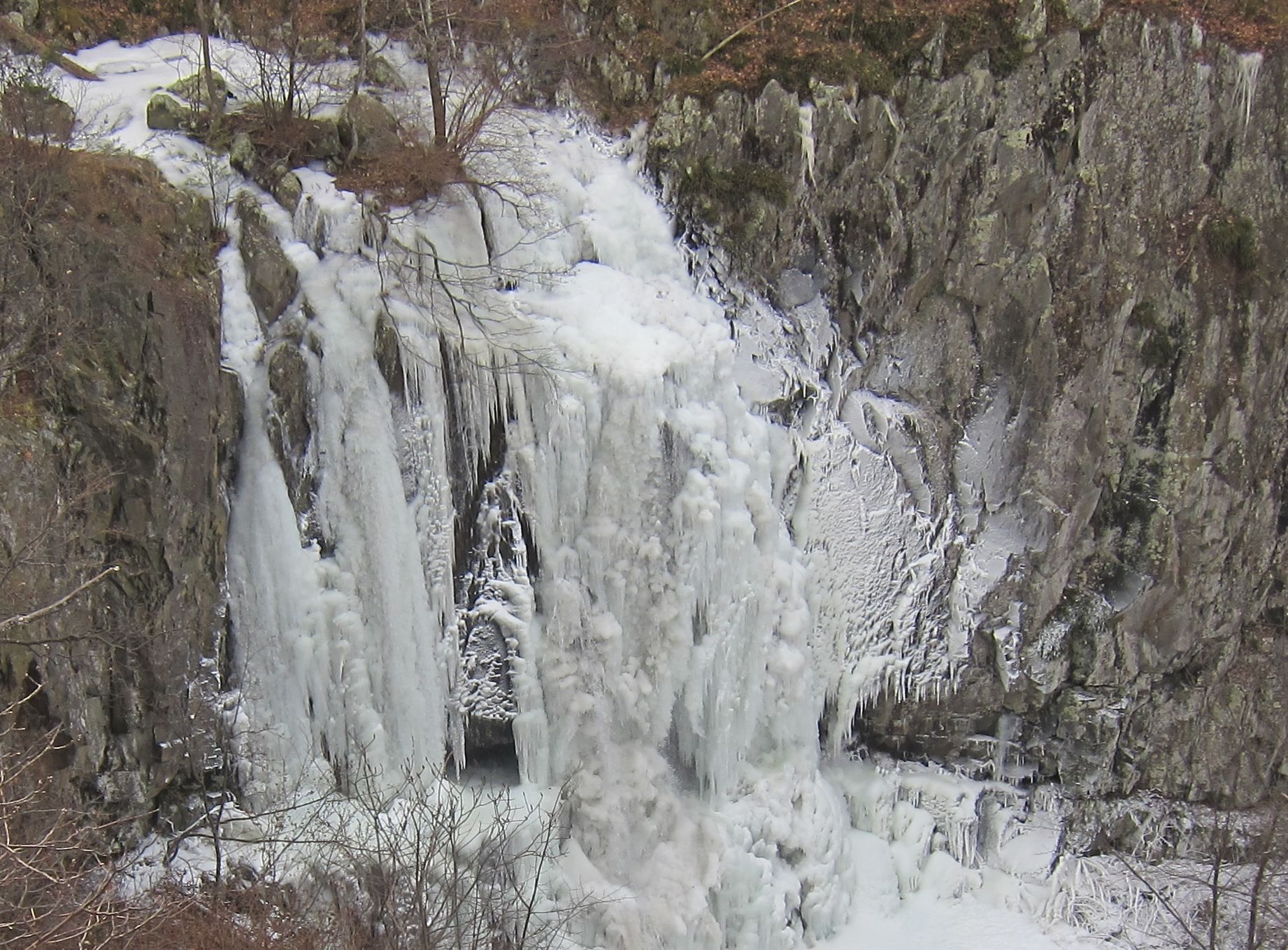 An icicle is a tapering spike of ice formed when dripping water freezes as it falls creating a cone-like structure that grows longer and thicker with each layer of water. When temperatures fall near 0°F whole waterfalls can freeze.
